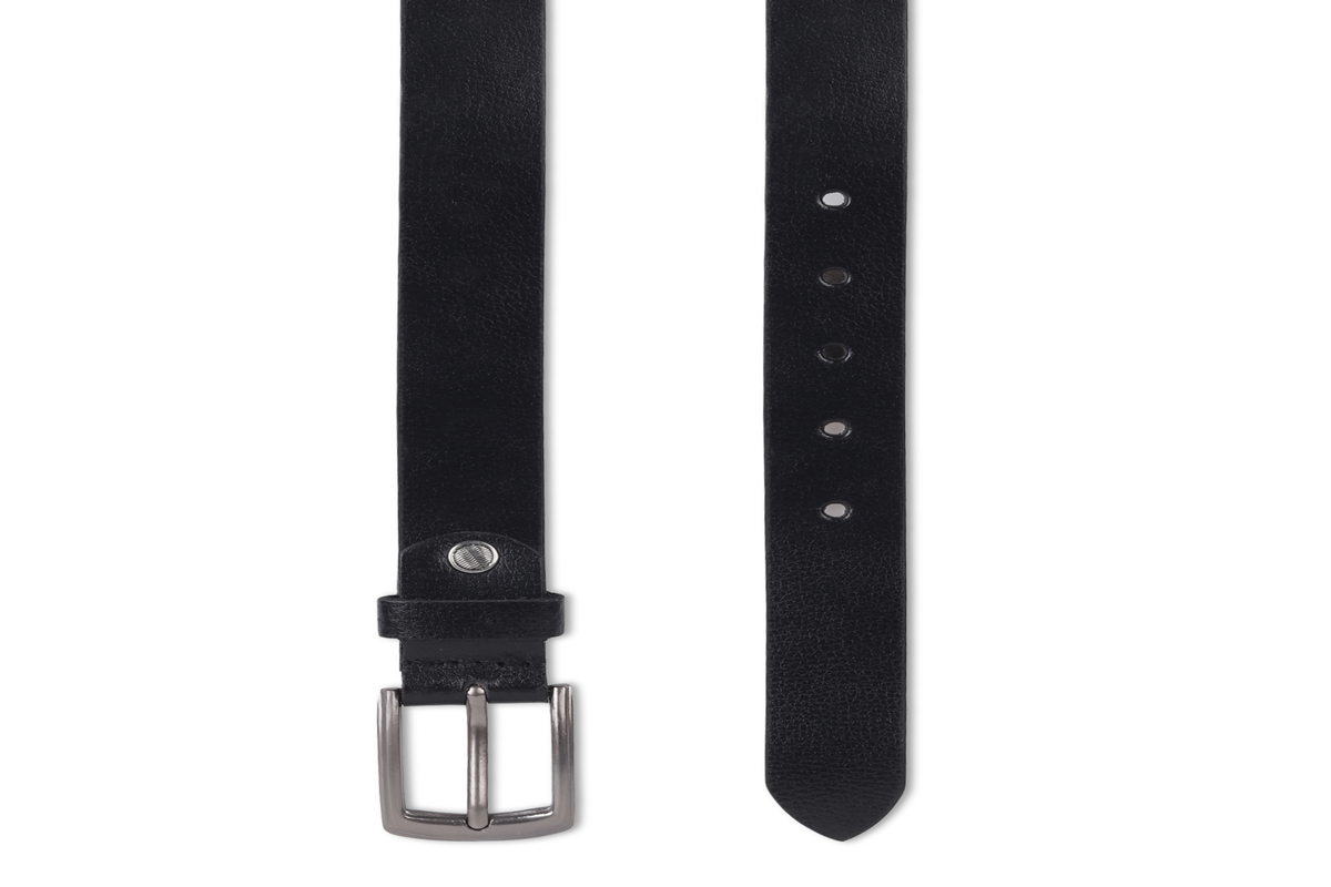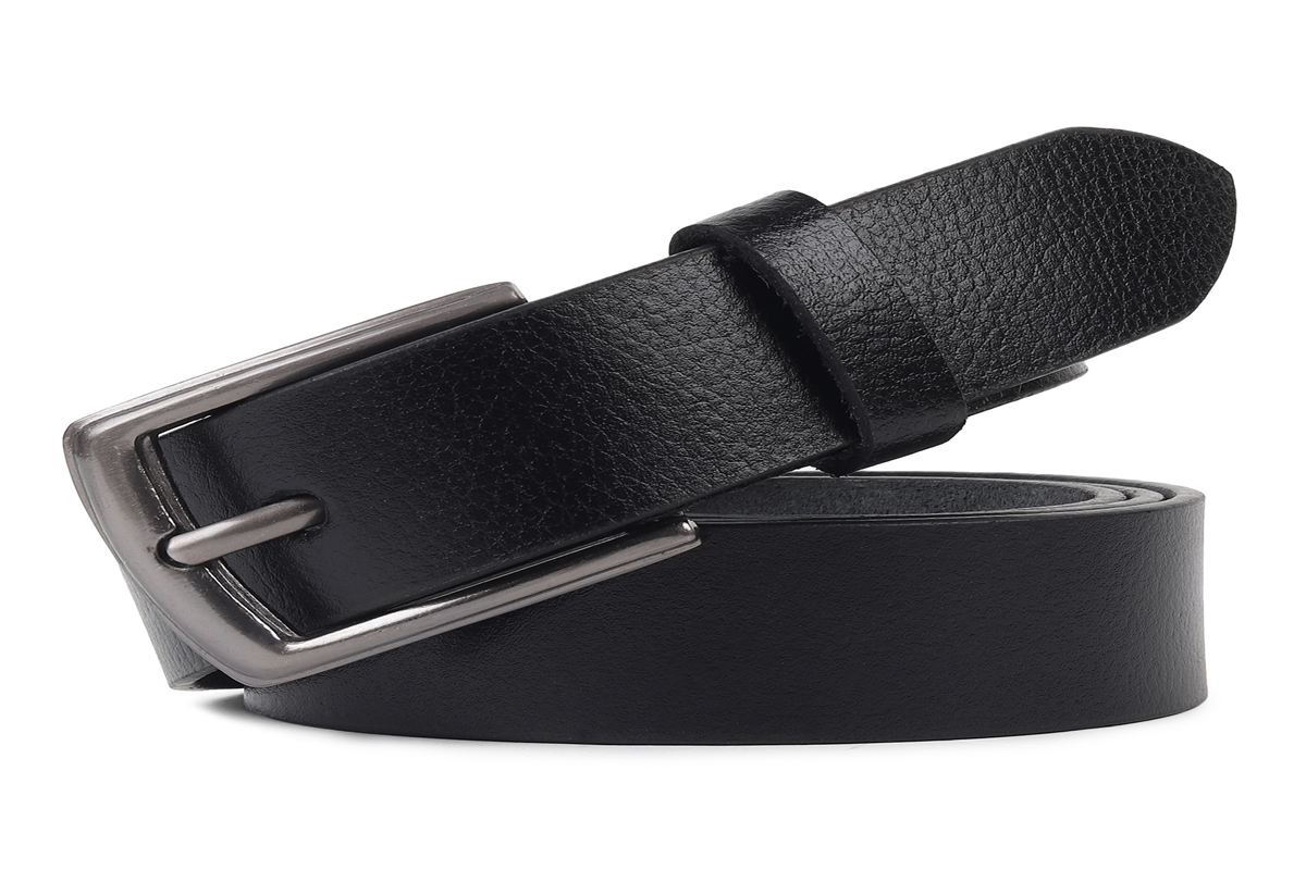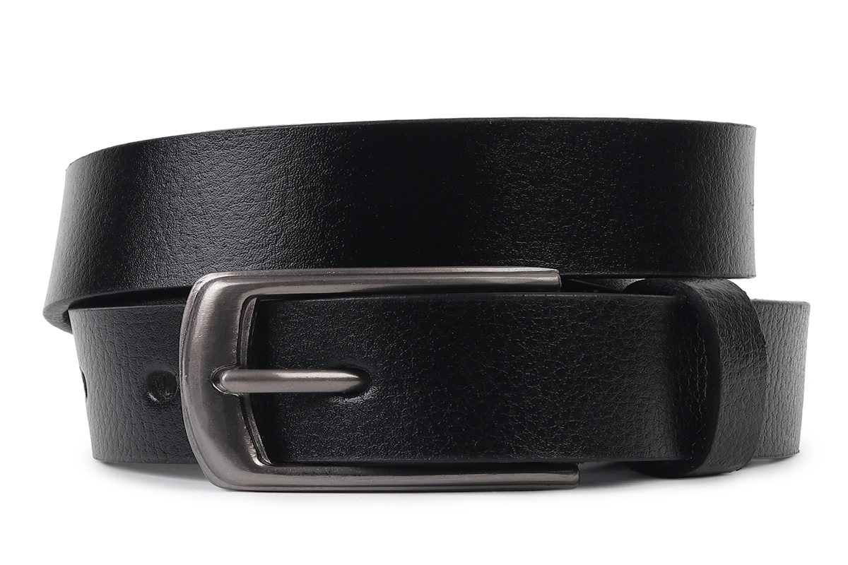 The belt appears to be made of smooth, high-quality genuine leather with a subtle sheen and a slightly textured surface. It features a sturdy, rectangular metal buckle in a matte silver or gunmetal finish, giving it a clean, timeless look. The buckle is attached with reinforced stitching and a metal rivet for added durability. The belt has a moderate width, suitable for both casual and semi-formal wear, such as jeans or dress trousers. The edges are neatly finished, and the inner side of the belt shows a soft, suede-like texture, indicating comfort and long-lasting use. Overall, the belt has a minimalist, versatile design ideal for everyday wear.