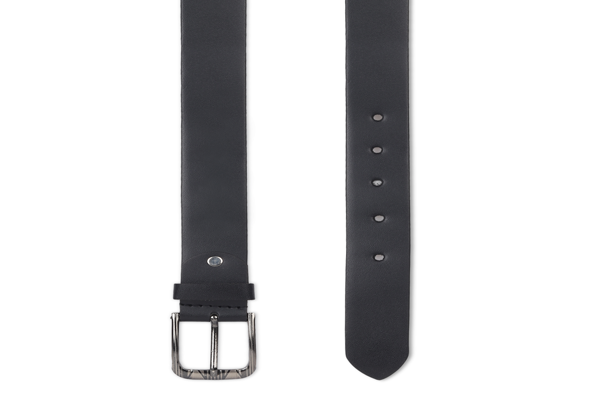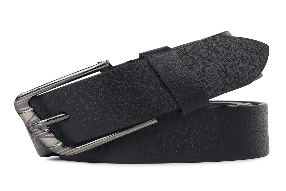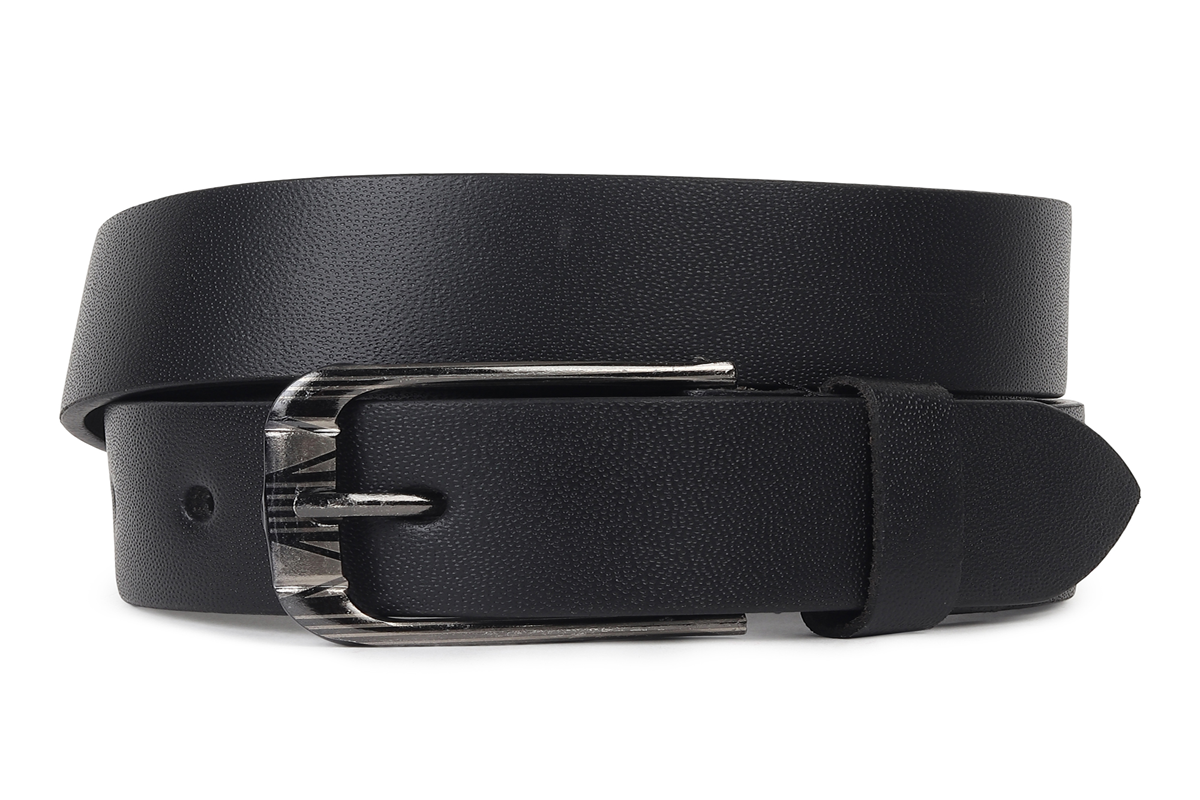 The belt appears to be made of smooth, high-quality genuine leather with a subtle sheen and a slightly textured surface. It features a sturdy, rectangular metal buckle in a matte silver or gunmetal finish, giving it a clean, timeless look. The buckle is attached with reinforced stitching and a metal rivet for added durability. The belt has a moderate width, suitable for both casual and semi-formal wear, such as jeans or dress trousers. The edges are neatly finished, and the inner side of the belt shows a soft, suede-like texture, indicating comfort and long-lasting use. Overall, the belt has a minimalist, versatile design ideal for everyday wear.