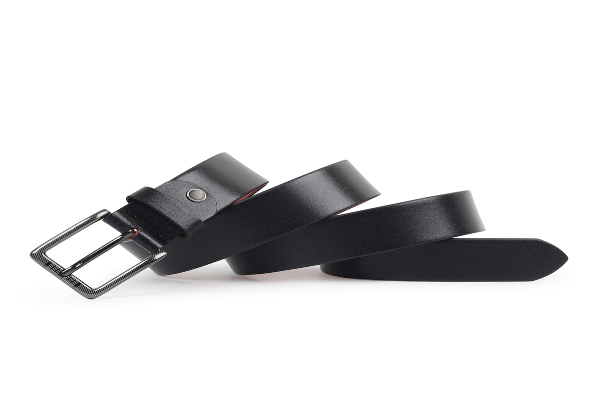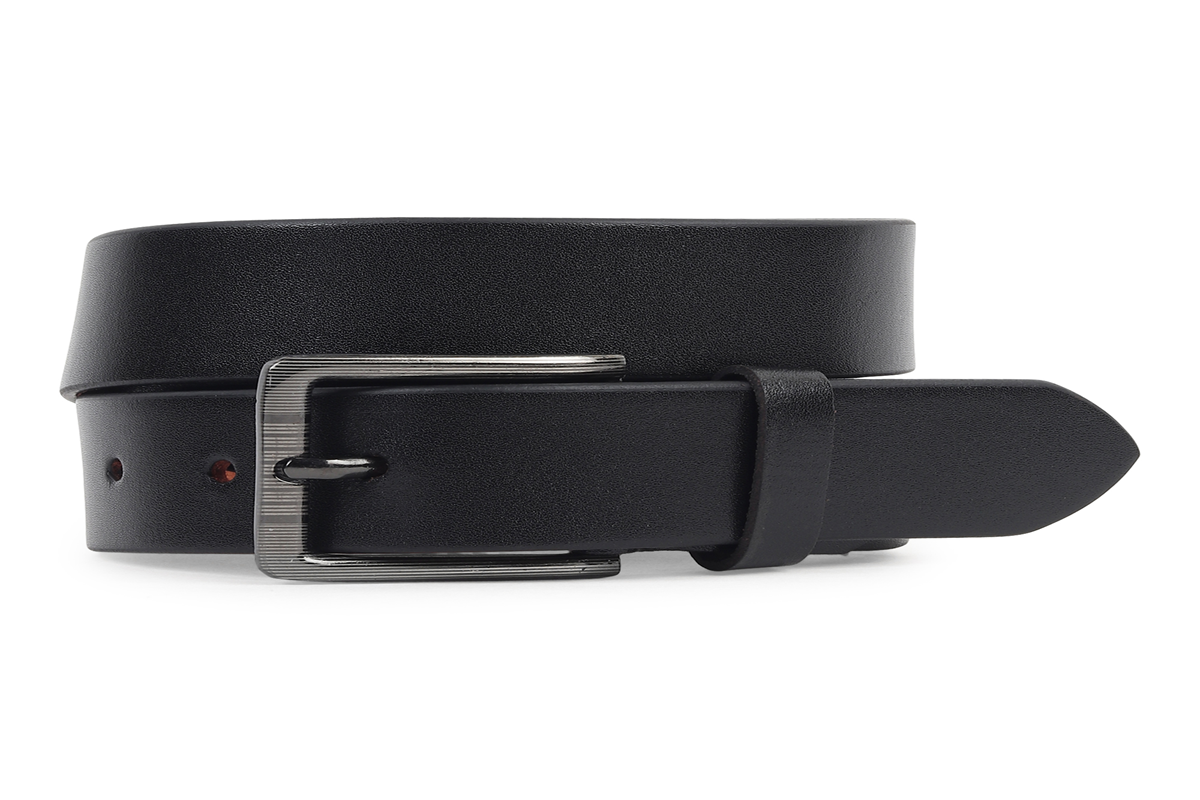 The belt has evenly spaced round holes along the strap to allow for adjustable sizing. The opposite end tapers slightly into a pointed tip, which is finished cleanly and embossed with a small, subtle logo mark near the tip. The belt’s moderate width makes it versatile enough for everyday casual wear as well as smart-casual or semi-formal outfits. Overall, the design is minimal, practical, and timeless, emphasizing durability and classic style.