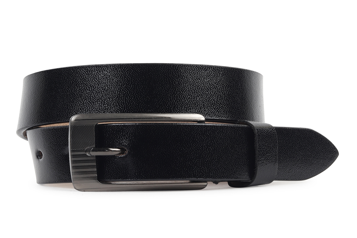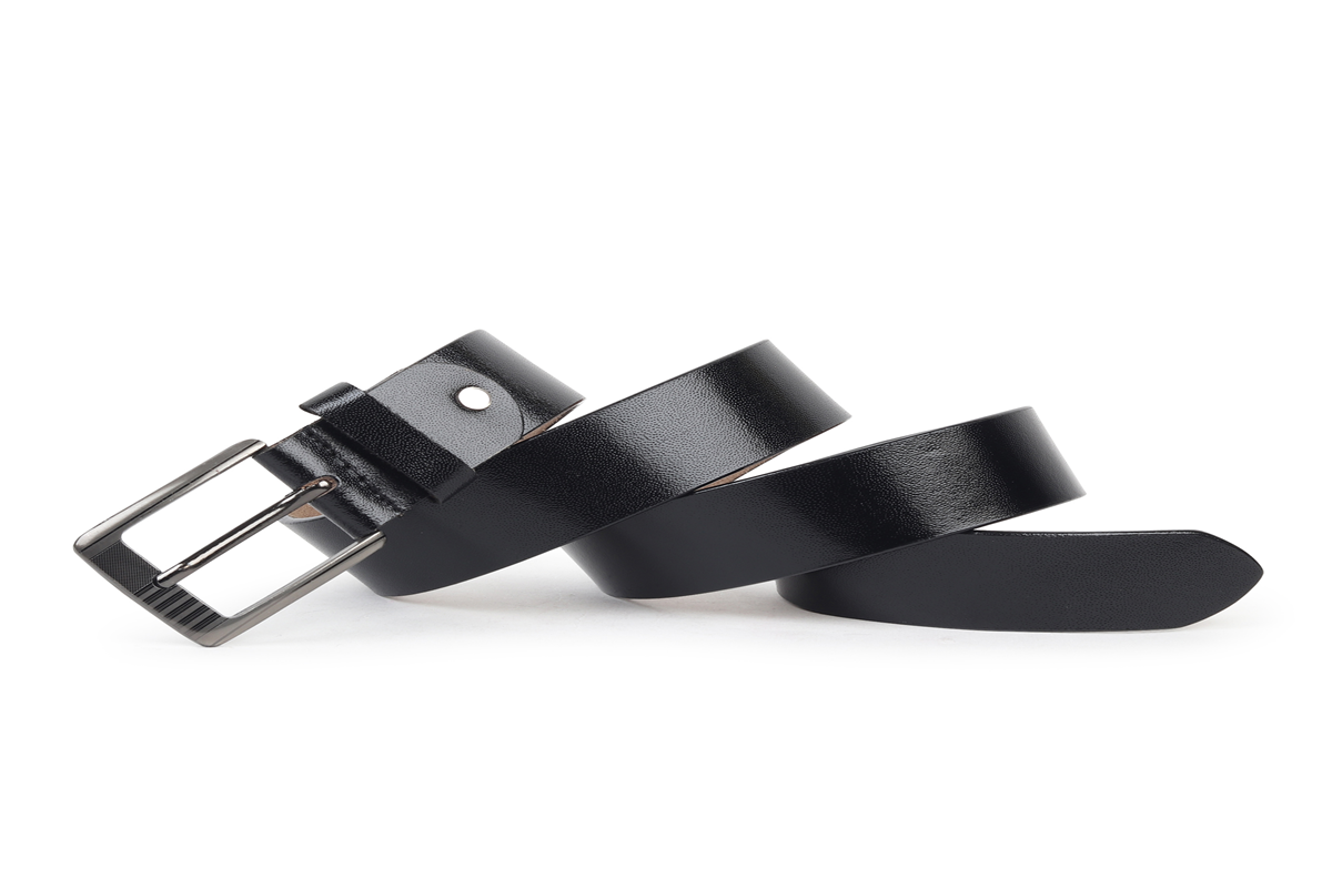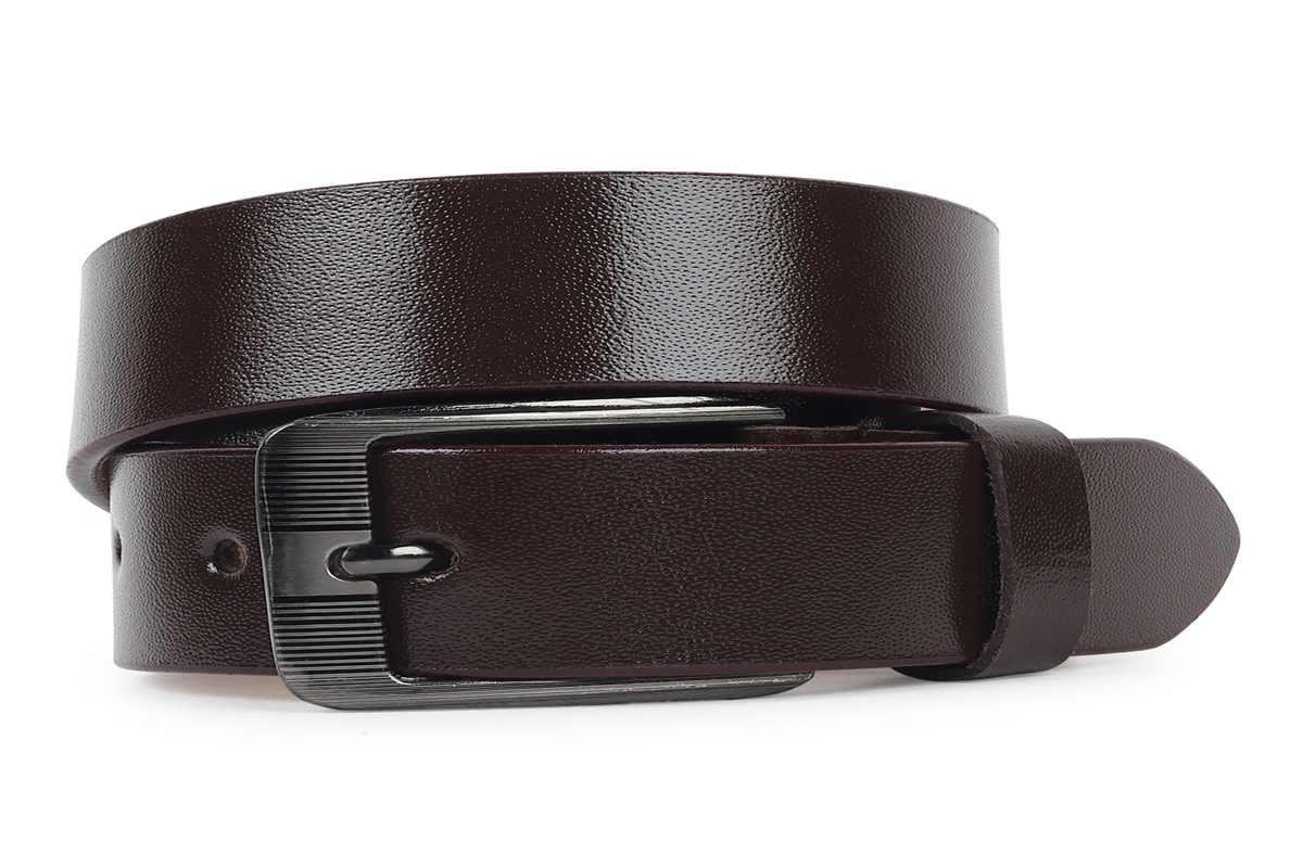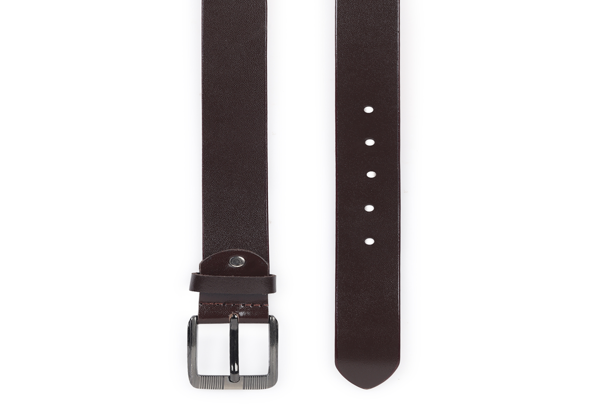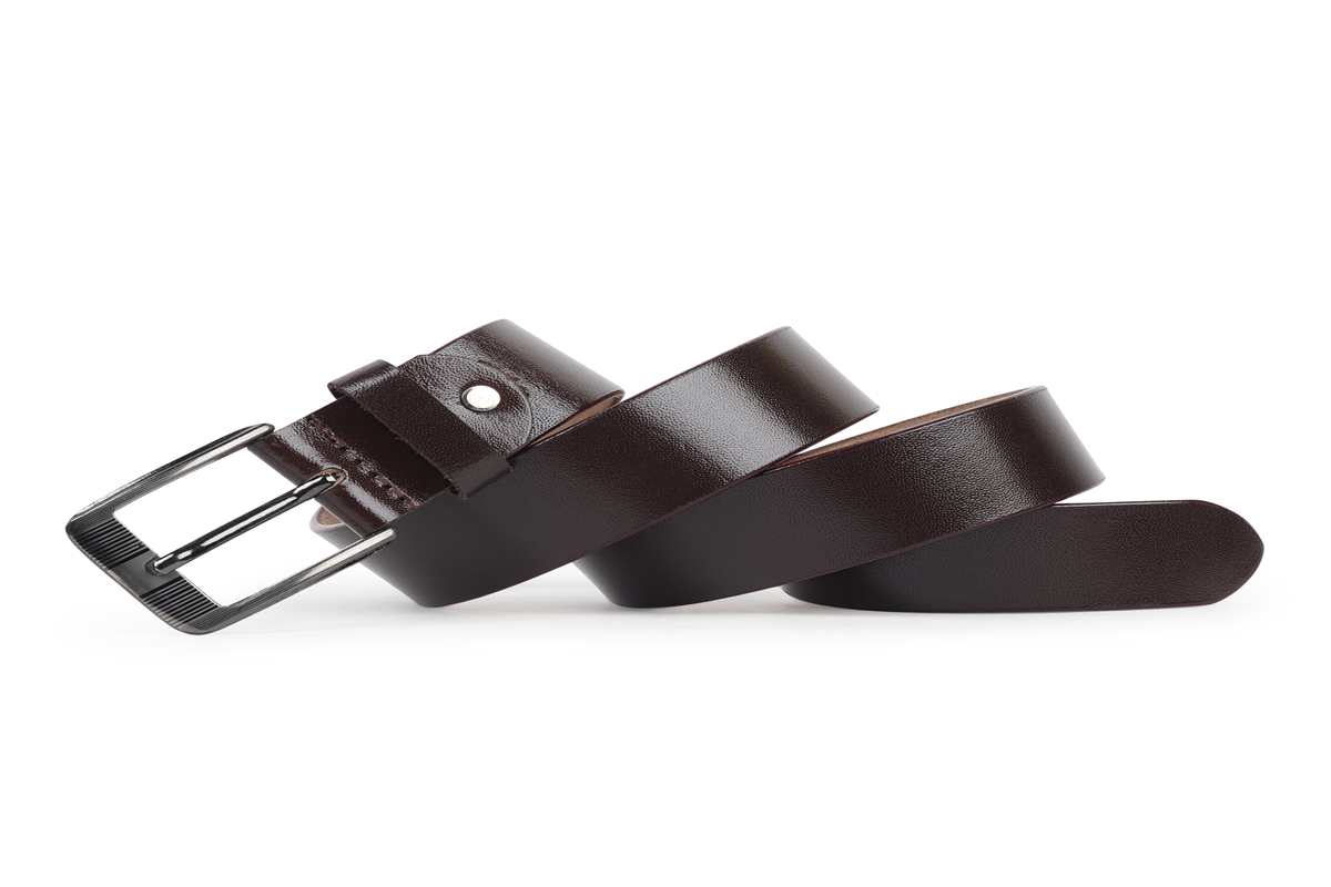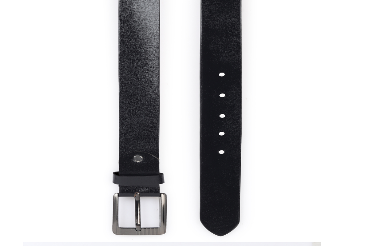 The belt appears to be made of smooth, high-quality genuine leather with a subtle sheen and a slightly textured surface. It features a sturdy, rectangular metal buckle in a matte silver or gunmetal finish, giving it a clean, timeless look. The buckle is attached with reinforced stitching and a metal rivet for added durability. The belt has a moderate width, suitable for both casual and semi-formal wear, such as jeans or dress trousers. The edges are neatly finished, and the inner side of the belt shows a soft, suede-like texture, indicating comfort and long-lasting use. Overall, the belt has a minimalist, versatile design ideal for everyday wear.